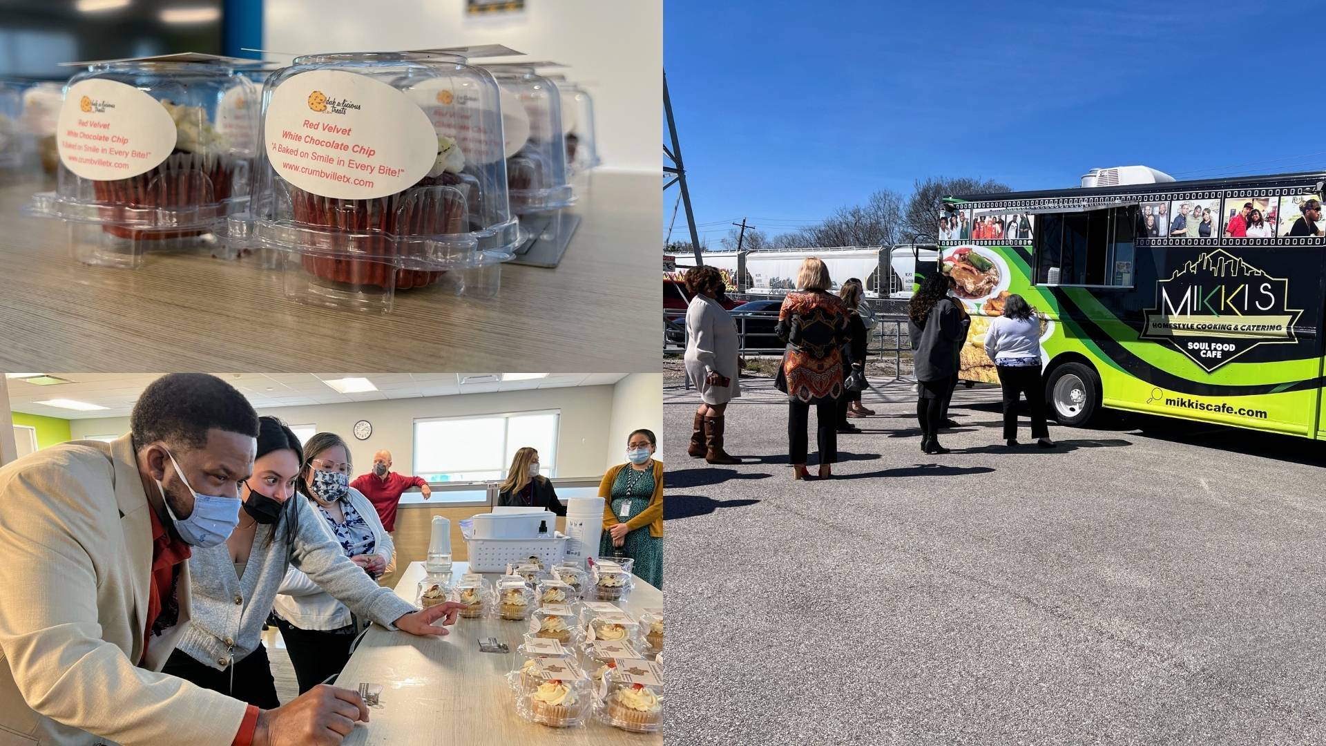 To end the month, the Black History Month Subcommittee organized the second annual Culture + Cuisine Day! Staff were treated to a day of catered meals from local Black-owned restaurants, with the day kicking off with breakfast from Glazed the Doughnut Café located at 1333 Old Spanish Trail. Staff lunches were catered by Mikki’s Soulfood Café and Soul Food Vegan. The day ended with Crumbville’s famous stuffed cupcakes!
